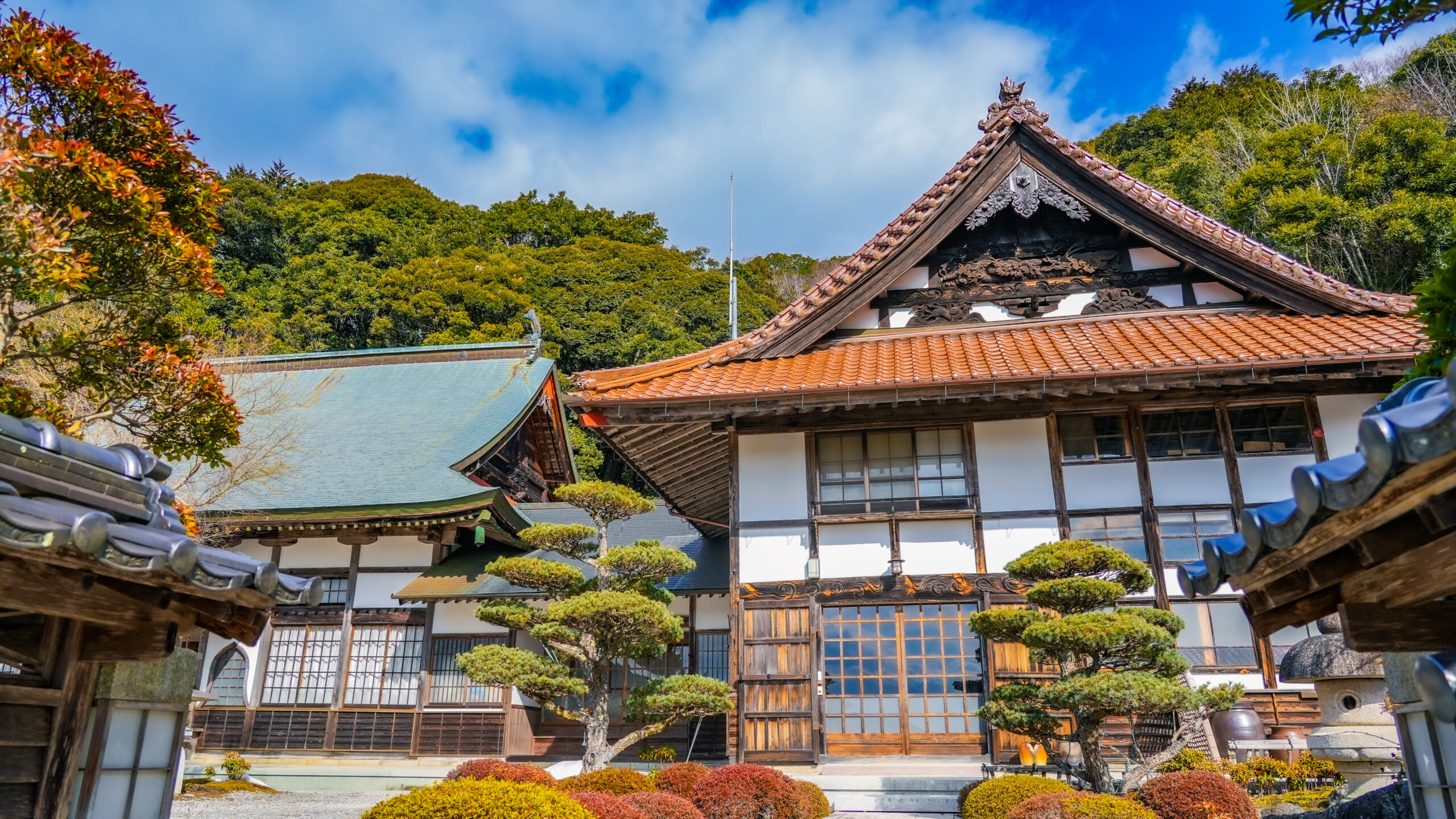 初夏にはサツキの花が咲き、秋には紅葉が彩る、四季折々の美しさを楽しめる寺院です。